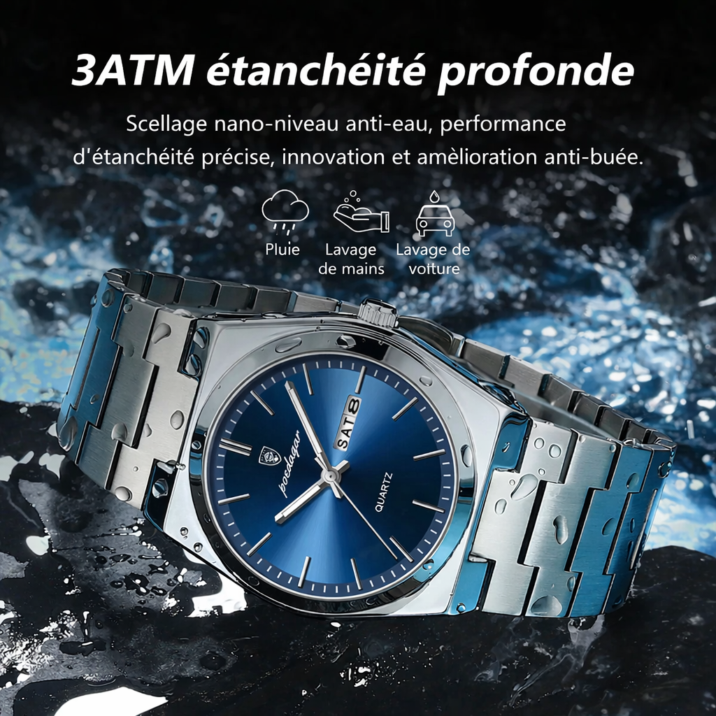 Cette montre a été conçue pour les hommes qui veulent se démarquer avec subtilité. Son design moderne et raffiné apporte une touche de prestige à chaque tenue, que ce soit au travail ou lors de vos sorties.